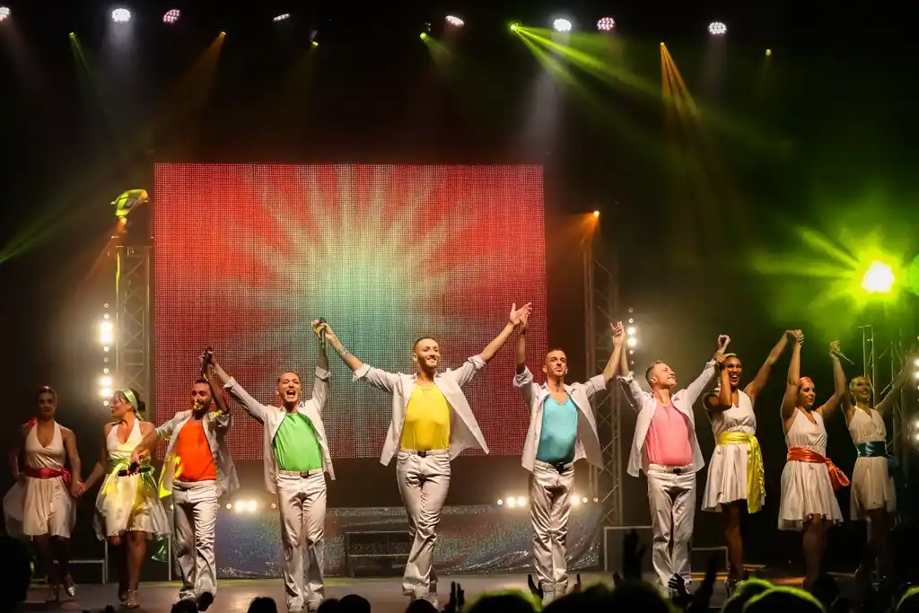 Dans un tourbillon de costumes et lumières, les 8 artisteschanteurs danseurs et comédiens de la troupe sauront vous émerveiller et vous faire voyager.